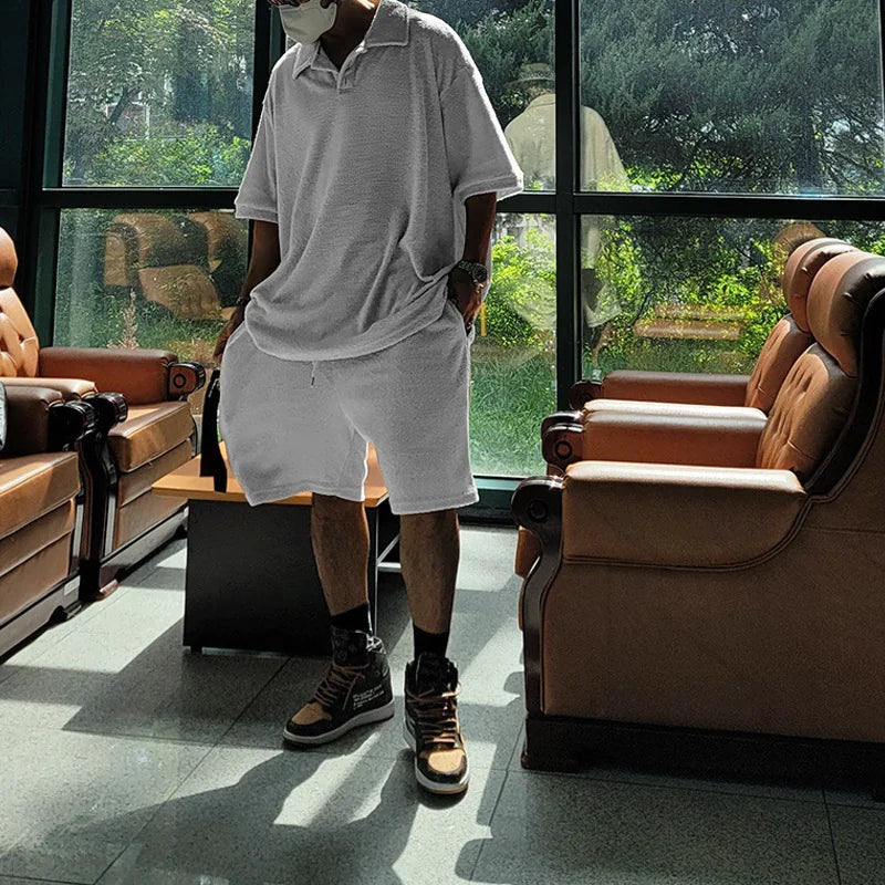 Men's Casual Towel Fabric Cozy Casual Two-piece Suit